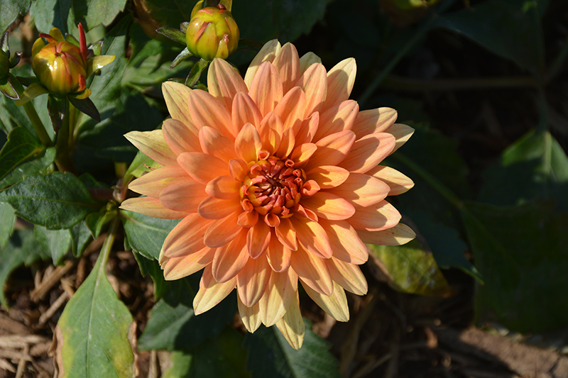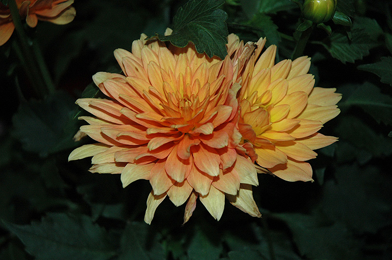 XXL Hidalgo Dahlia features showy double yellow daisy flowers with peach overtones at the ends of the stems from mid to late summer. The flowers are excellent for cutting. Its pointy leaves remain green in color throughout the season.
