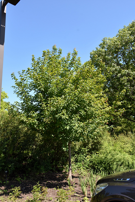 A spectacular choice for its reliable blazing red-orange fall color and bright red fruits that appear in early summer and persist until fall; this is a shapely small tree that is very hardy and adaptable; great as a fall accent in smaller home landscapes